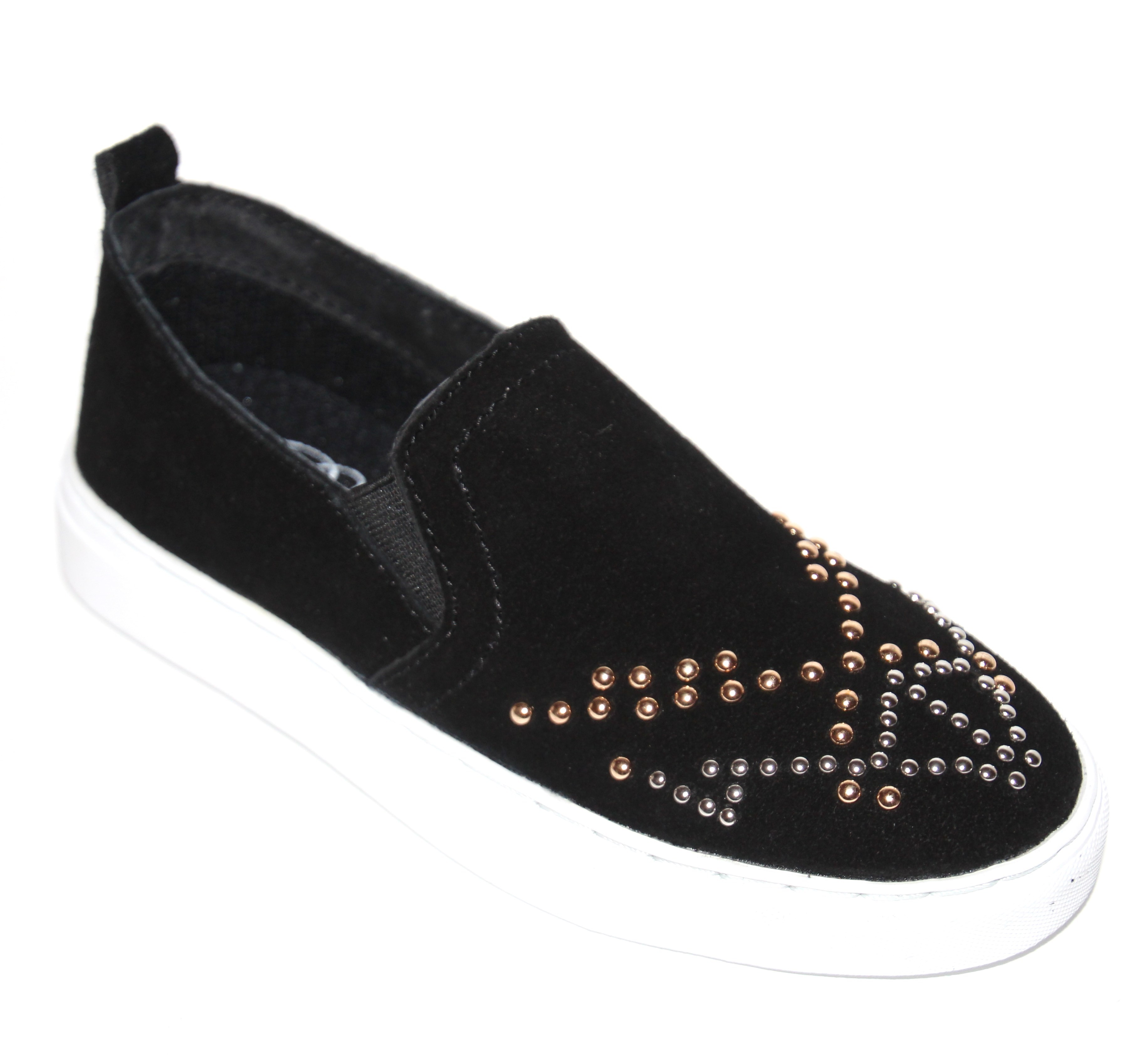 Super flotte slip-on i sort med nitter fra petit by sofie schnoor. Ingen velcro og ingen snørebånd. En rigtig fin sko som passer til alt. Scroll længere ned på siden og læs mere om skoen.